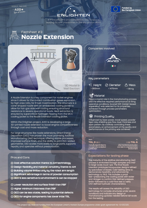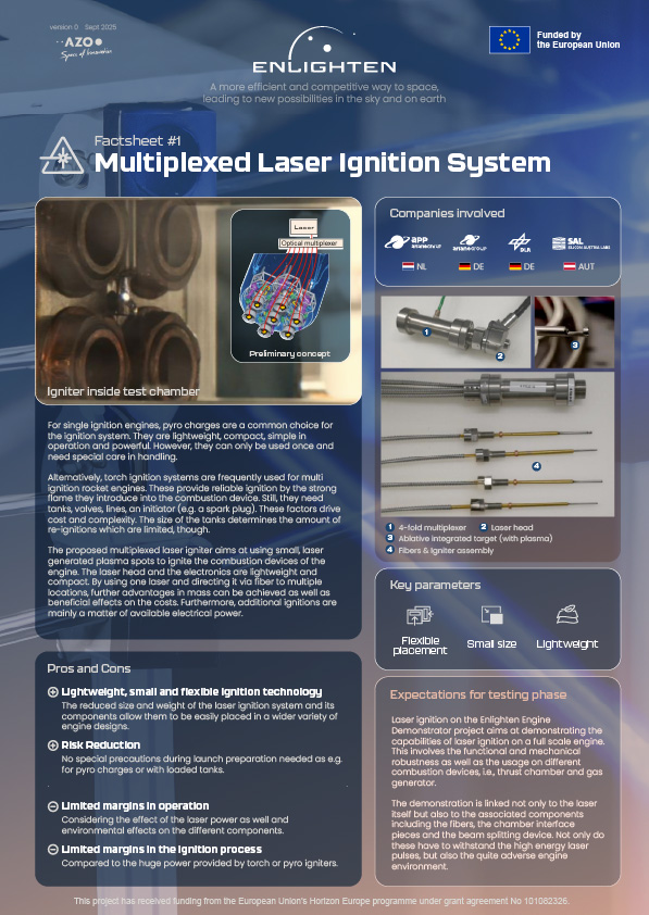Each fact sheet highlights one of the innovative technologies developed within ENLIGHTEN, explaining its purpose, technical approach and expected contribution to future rocket engines.